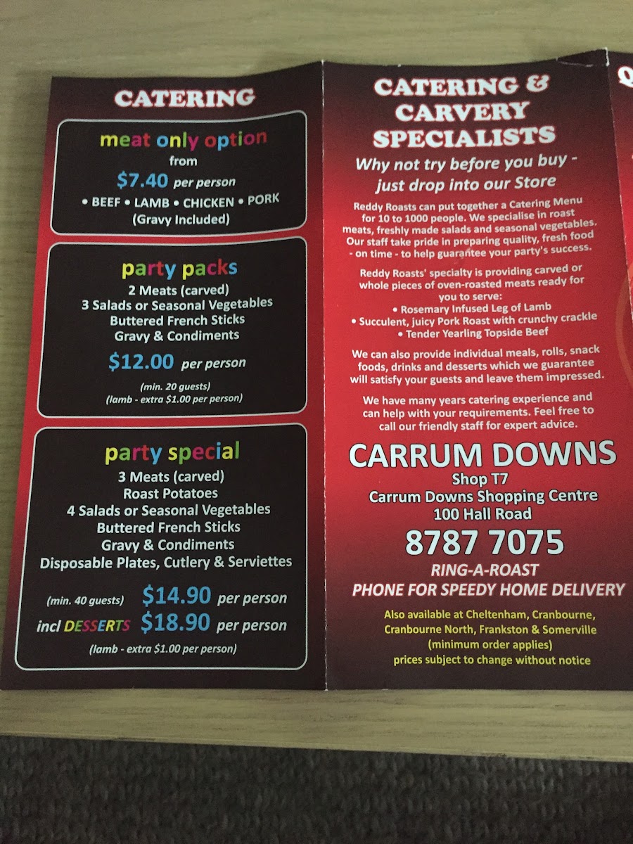 Welcome to Reddy Roasts Carvery - Carrum Downs, where hearty meals meet exceptional service! Nestled at T7/100 Hall Rd, Carrum Downs, this catering gem specializes in creating memorable dining experiences for any occasion.